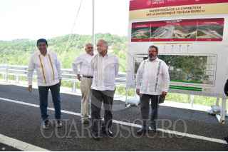 OAXACA, OAXACA, 15ABRIL2023.- Andrés Manuel López Obrador, presidente de México, encabezó la supervisión de obras de la autopista de Oaxaca al Istmo de Tehuantepec. FOTO: PRESIDENCIA/CUARTOSCURO.COM