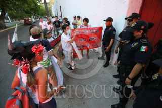 MÉRIDA, YUCATÁN, 15ABRIL2023.- Hoy por la tarde un grupo de activistas antitaurinos se manifestaron a las afueras de la Plaza de Toros Mérida para exigir la cancelación de las corridas de toros en la entidad pues afirman que estos espectaculos promueven la violencia y que no debería ser considerado cómo arte ni cultura, además afirman que aún continúan ingresando a menores de edad a estos recintos taurinos. FOTO: MARTIN ZETINA/CUARTOSCURO.COM