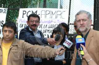 MÉXICO D.F. 05ABRIL2007.- La organización PCM-APIMAC dió a conocer que a partir del próximo lunes mantendra un planton a las afueras de la embajada de los Estados Unidos, en protesta con el muro fronterizo. En la foto, Jeremy Corvin, parlamentario ingles de la ala izquierda laborista en Inglaterra. FOTO: GUILLERMO MARTÍNEZ/CUARTOSCURO.COM