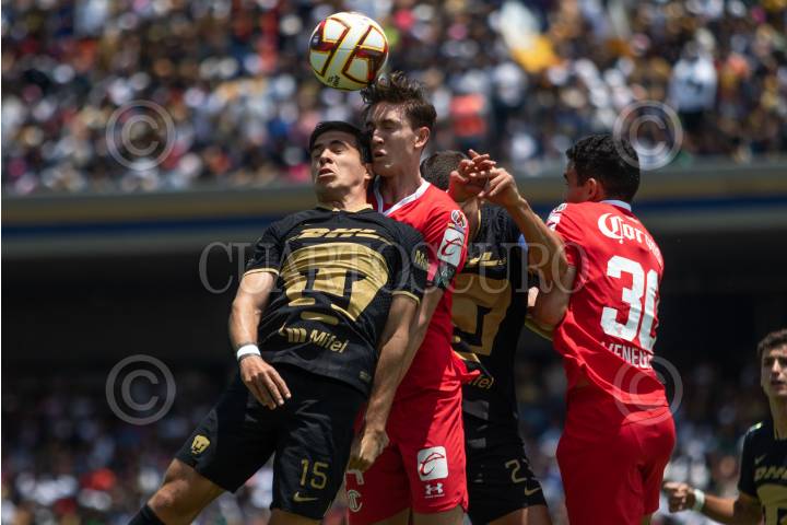CIUDAD DE MÉXICO, 16ABRIL2023.- Los Pumas se encuentran venciendo al Toluca 3-1, con goles de Juan Ignacio Dinenno, César Huerta y Eduardo Salvio, por los rojos descontó Carlos González, al medio tiempo. La escuela universitaria es dirigida por Antonio Mohamed y los Diablos son comandados por Ignacio Ambriz. Partido de la jornada 15 de la Liga MX, realizado en el Estadio Olímpico Universitario. FOTO: MOISÉS PABLO/CUARTOSCURO.COM