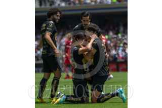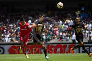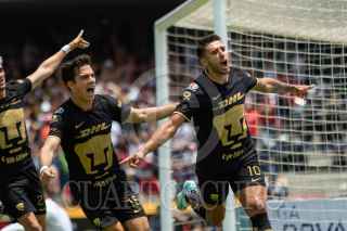 CIUDAD DE MÉXICO, 16ABRIL2023.- Los Pumas se encuentran venciendo al Toluca 3-1, con goles de Juan Ignacio Dinenno, César Huerta y Eduardo Salvio, por los rojos descontó Carlos González, al medio tiempo. La escuela universitaria es dirigida por Antonio Mohamed y los Diablos son comandados por Ignacio Ambriz. Partido de la jornada 15 de la Liga MX, realizado en el Estadio Olímpico Universitario. FOTO: MOISÉS PABLO/CUARTOSCURO.COM