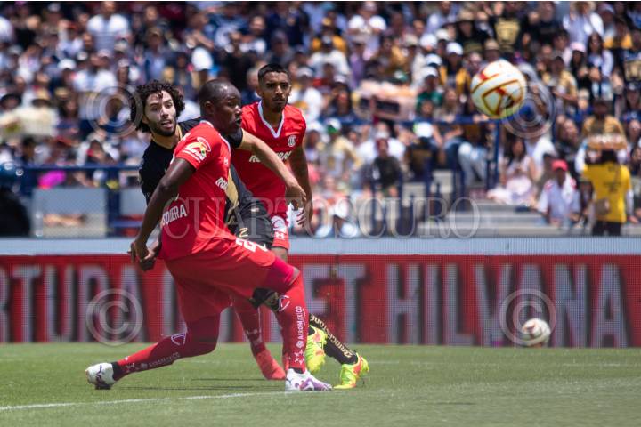 CIUDAD DE MÉXICO, 16ABRIL2023.- Los Pumas se encuentran venciendo al Toluca 3-1, con goles de Juan Ignacio Dinenno, César Huerta y Eduardo Salvio, por los rojos descontó Carlos González, al medio tiempo. La escuela universitaria es dirigida por Antonio Mohamed y los Diablos son comandados por Ignacio Ambriz. Partido de la jornada 15 de la Liga MX, realizado en el Estadio Olímpico Universitario. FOTO: MOISÉS PABLO/CUARTOSCURO.COM