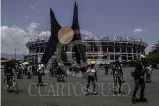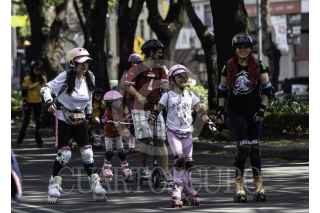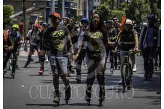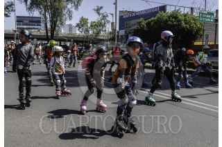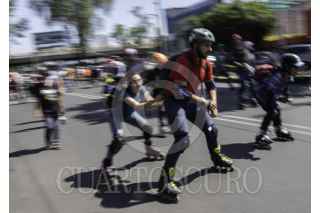 CIUDAD DE MÉXICO, 16ABRIL2023.- Partiendo desde la alberca Olimpica para llegar hacía el Estadio Azteca, decenas de personas salieron en patines a rodar en el marco del Global Roller Day, Día del Patinador organizada por INDEPORTE. FOTO: ANDREA MURCIA /CUARTOSCURO.COM