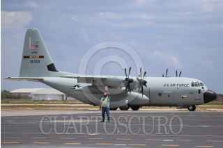 MÉRIDA, YUCATÁN 16 DE ABRIL DE 2023 Hoy por la mañana arribo al aeropuerto Internacional de la Ciudad de Mérida "Licenciado Manuel Crecencio Rejón" el avión Cazahuracanes del Escuadron de Reconocimiento Meteorologico de la Fuerza Aérea de los Estados Unidos de América, el cuál estará en el país del 16 al 18 de abril. FOTO: MARTIN ZETINA/ CUARTOSCURO.COM