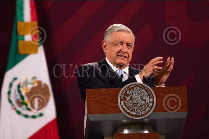 CIUDAD DE MÉXICO, 17ABRIL2023.- Andrés Manuel López Obrador, Presidente de México, durante la mañanera en la cual se habló de los avances del Tren Maya Tramo 1, en Palacio Nacional. Lo acompañaron Rutilio Escandón Cadenas, gobernador del estado de Chiapas; Carlos Manuel Merino Campos, gobernador del estado de Tabasco; María Luisa Albores Gonzales, secretaria de Medio Ambiente y Recursos Naturales (SEMARNAT); Ariadna Montiel Reyes, secretaria de Bienestar; Leticia Ramírez Amaya, secretaria de Educación Pública; Javier May Rodríguez, director general de FONATUR; Hugo López Gatell Ramírez, subsecretario de Prevención y Promoción de la Salud; Ricardo Sheffield Padilla, Procurador Federal del Consumidor; Diego Prieto Hernández, director general del INAH; Maité Ramos Gómez, directora general de ALSTOM México; Joao Pedro Santos Parreira, presidente de Mota Engil Latinoamérica, y Blas Andrés Núñez Jordan, jefe del centro coordinador Tren Maya de la dirección General de Ingenieros FOTO: MOISÉS PABLO/CUARTOSCURO.COM