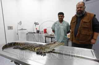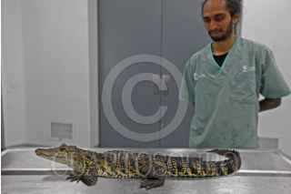 GUADALAJARA, JALISCO, 17ABRIL2023.- El pasado viernes en la colonia de la Penal justo en los cruces de las calles Josefa Ortiz de Domínguez y José María Gómez, fue localizado un cocodrilo de aproximadamente 3 años de edad y metro y medio de largo, finalmente personal especializado en protección animal trasladaron al reptil a las instalaciones del Zoológico Villa Fantasía, en donde determinaran cual será su destino final. FOTO: FERNANDO CARRANZA GARCIA / CUARTOSCURO.COM
