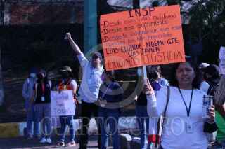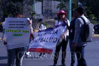 CUERNAVACA, MORELOS, 18ABRIL2023.- Estudiantes de posgrado del Instituto Nacional de Salud Pública, trabajadores y familiares de los hermanos Luis Enrique y Luis Javier García Díaz y Noemi Guadalupe Arias Sosa, desaparecidos el pasado miércoles y encontrados sus cadáveres el viernes, bloquean los accesos a la ciudad en el sitio conocido como la Paloma de la Paz, como medida de presión y protesta por el clima de inseguridad en el estado gobernado por el ex futbolista Cuauhtémoc Blanco Bravo. FOTO: MARGARITO PÉREZ RETANA / CUARTOSCURO.COM