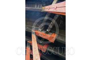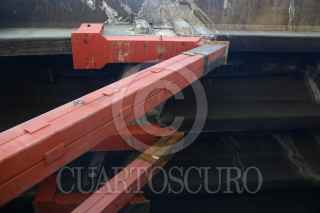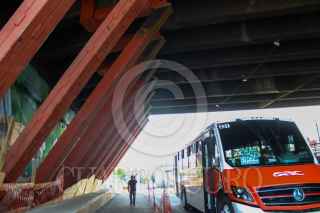 CIUDAD DE MÉXICO. 18ABRIL2023.- Una gran estructura metálica refuerza una trabe en la línea 9 del Sistema de Transporte Colectivo Metro, en la llegada de la estación Pantitlán. FOTO: VICTORIA VALTIERRA/CUARTOSCURO.COM