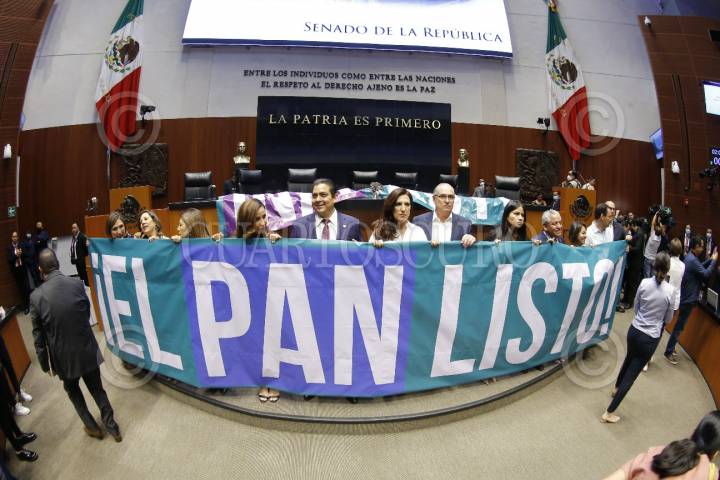 CIUDAD DE MÉXICO, 18ABRIL2023.- El grupo parlamentario del PAN en el Senado, encabezado por su coordinador, Julen Rementería, tomaron la tribuna de la Cámara Alta exigiendo la designación de los consejeros faltantes del INAI. FOTO: CUARTOSCURO.COM