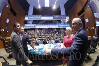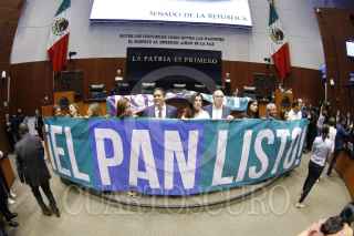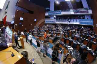 CIUDAD DE MÉXICO, 18ABRIL2023.- El grupo parlamentario del PAN en el Senado, encabezado por su coordinador, Julen Rementería, tomaron la tribuna de la Cámara Alta exigiendo la designación de los consejeros faltantes del INAI. FOTO: CUARTOSCURO.COM
