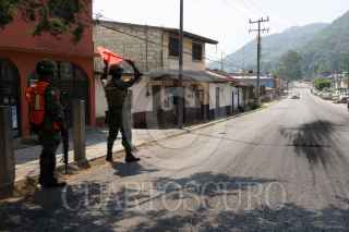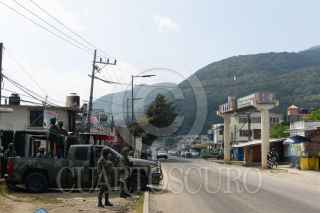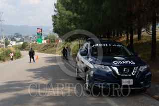 SAN CRISTÓBAL DE LAS CASAS, CHIAPAS, 18ABRIL2023.- Retenes de la Policía Estatal y del Ejército Mexicano se pudieron apreciar en las principales saldias de la ciudad tras los hechos violentos de ayer en donde se desataron varias balaceras y varias casas fueron quemadas luego de que supuestamente asesinarán a un líder criminal. FOTO: CUARTOSCURO.COM