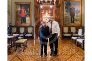 CIUDAD DE MÉXICO, 19ABRIL2023.- Andrés Manuel López Obrador, presidente de México, felicitó a Elena Poniatowska, escritora y periodista, por la medalla Belisario Domínguez que recibirá esta tarde por parte del Senado de la República. FOTO: PRESIDENCIA/CUARTOSCURO.COM