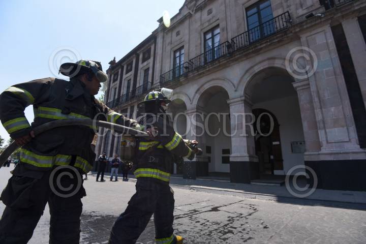 TOLUCA, ESTADO DE MÉXICO, 19ABRIL2023.- Trabajadores de Palacio de Gobierno, Cámara de Diputados Local, Poder Judicial y el Ayuntamiento de Toluca participaron en el Primer Simulacro Nacional 2023, a las 11:00 hrs se activó la alerta sísmica, con una hipótesis de sismo magnitud 7.5 localizado en los límites de Puebla y Veracruz, las brigadas de Protección Civil realizaron la inspección de los inmuebles. Luis Felipe Puente Secretario General de Gobierno dio los pormenores de este ejercicio. FOTO: CRISANTA ESPINOSA AGUILAR /CUARTOSCURO.COM