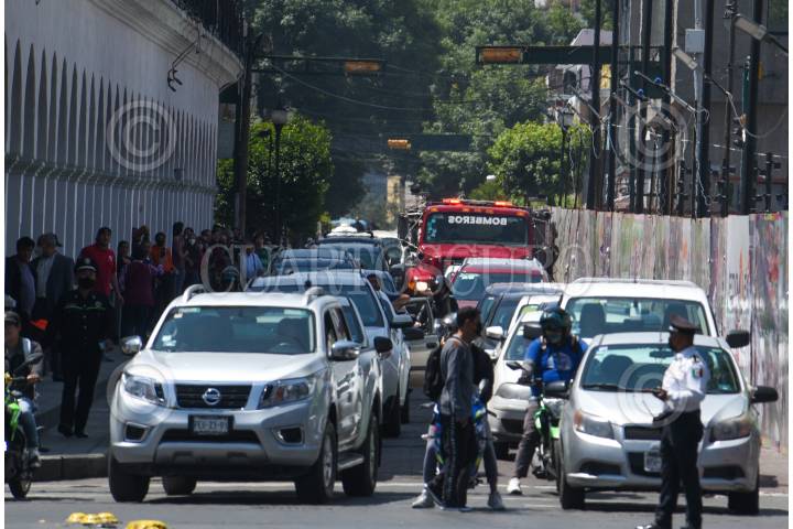 TOLUCA, ESTADO DE MÉXICO, 19ABRIL2023.- Trabajadores de Palacio de Gobierno, Cámara de Diputados Local, Poder Judicial y el Ayuntamiento de Toluca participaron en el Primer Simulacro Nacional 2023, a las 11:00 hrs se activó la alerta sísmica, con una hipótesis de sismo magnitud 7.5 localizado en los límites de Puebla y Veracruz, las brigadas de Protección Civil realizaron la inspección de los inmuebles. Luis Felipe Puente Secretario General de Gobierno dio los pormenores de este ejercicio. FOTO: CRISANTA ESPINOSA AGUILAR /CUARTOSCURO.COM