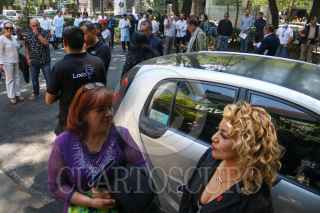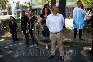CIUDAD DE MÉXICO. 19ABRIL2023.- A las 11:00 de la mañana se realizó el Simulacro para estar prevenidos en caso sismos, en la Capital del país. Aquí la zona de Polanco, en la que la gente salió de restaurantes de esta exclusiva colonia. FOTO: VICTORIA VALTIERRA/CUARTOSCURO.COM