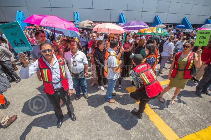 CIUDAD DE MÉXICO, 19ABRIL2023.- Trabajadores de la Secretaría de Agricultura y Desarrollo Rural salieron a las inmediaciones de la avenida Cuauhtémoc como parte del simulacro nacional. FOTO: JUAN PABLO ZAMORA/CUARTOSCURO.COM