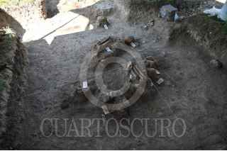 BALANCÁN, TABASCO, 19ABRIL2023.- El descubrimiento, por parte de arqueólogos del Instituto Nacional de Antropología e Historia (INAH), de una veintena de entierros humanos consagrados a un templo-pirámide de la Zona Arqueológica de Moral-Reforma permite considerar que esta construcción estuvo vinculada con la muerte o con una deidad del inframundo maya, debido a las señales de decapitación en algunos de los cráneos. El hallazgo de los enterramientos, correspondientes a un par de contextos funerarios de distinta temporalidad, derivan de las acciones realizadas por el proyecto Arqueológico Moral-Reforma, en el marco del Programa de Mejoramiento de Zonas Arqueológicas (Promeza), a cargo de la Secretaría de Cultura federal, mediante el cual se pone al día la infraestructura de este tipo de sitios cercanos a la ruta del Tren Maya. El coordinador de esta iniciativa de investigación y conservación, Francisco Apolinar Cuevas Reyes, explica que entre enero y marzo del año en curso se realizaron trabajos de excavación y consolidación en el templo-pirámide, denominado Estructura 18, el cual se ubica en la plaza oriente de la antigua ciudad, y consiste en un basamento de cuerpos escalonados, delimitados por muros con ligeros taludes, coronado por un edificio de una crujía y provisto de una escalinata adosada en la fachada sur. FOTO: PROYECTO ARQUEOLÓGICO MORAL REFORMA/CUARTOSCURO.COM