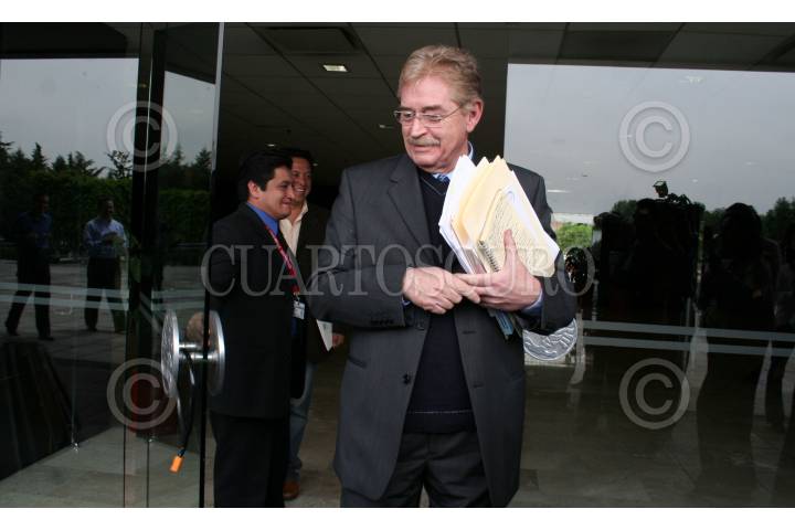 MÉXICO. D.F. 09ABRIL2007.- La coordinadora del Partido Ecologista de México Gloria Lavara Mejía y Miguel Angel Jímenez, Nueva Alianza a su salida de la junta de coordinación polìtica. FOTO: PAOLA HIDALGO/CUARTOSCURO.COM