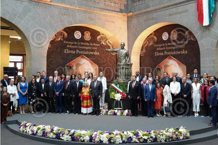 CIUDAD DE MÉXICO, 19ABRIL2023.- La escritora Elena Poniatowska recibió la medalla Belisario Domínguez por Adán Augusto, secretario de Gobernación, en el Senado de la República, sede Xicoténcatl. FOTO: GRACIELA LÓPEZ /CUARTOSCURO.COM