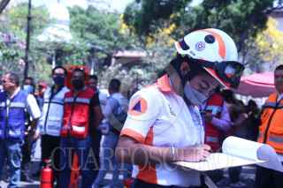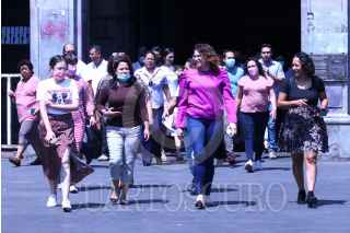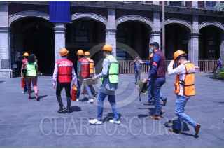 CUERNAVACA, MORELOS, 19ABRIL2023.- Decenas de trabajadores del poder ejecutivo participan en el Simulacro Nacional 2023, imagen tomada en la Plaza de Armas de Cuernavaca. FOTO: MARGARITO PÉREZ RETANA / CUARTOSCURO.COM
