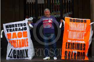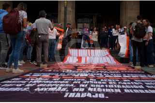CIUDAD DE MÉXICO, 19ABRIL2023.- Trabajadores voluntarios de limpia de la ciudad realizaron una protesta frente al ex Palacio de Ayuntamiento para exigir apoyo a las mejoras laborales. FOTO: ROGELIO MORALES /CUARTOSCURO.COM