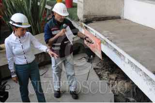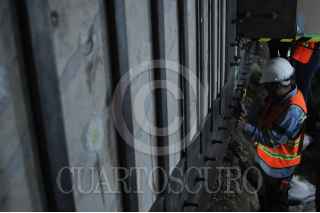 CIUDAD DE MÉXICO, 20ABRIL2023.- Claudia Sheinbaum, jefa de gobierno de la capital, realizó un recorrido por las obras de mantenimiento en la Terminal 2 del AICM, la cual registraba hundimientos, lo que provocaba daños en la estructura y en el drenaje. FOTO: DANIEL AUGUSTO /CUARTOSCURO.COM