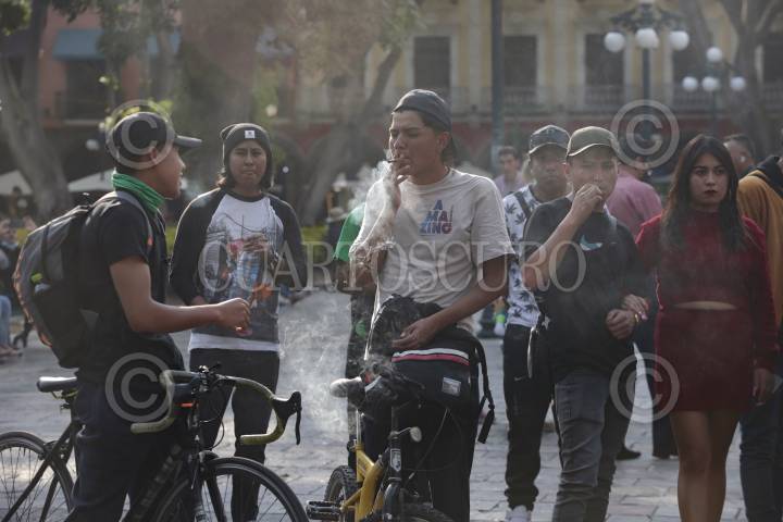 PUEBLA, PUEBLA, 20ABRIL2023.-Integrantes del colectivo Toque Poblano realizaron rodada para celebrar el Día Mundial de la Marihuana. FOTO: MIREYA NOVO/ CUARTOSCURO.COM