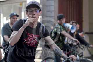 PUEBLA, PUEBLA, 20ABRIL2023.-Integrantes del colectivo Toque Poblano realizaron rodada para celebrar el Día Mundial de la Marihuana. FOTO: MIREYA NOVO/ CUARTOSCURO.COM