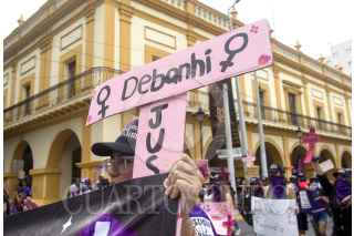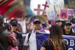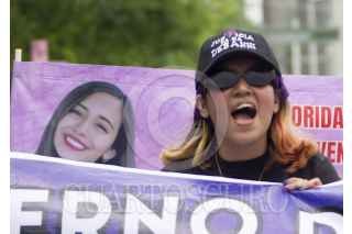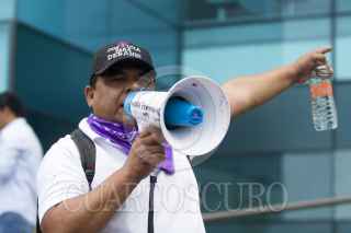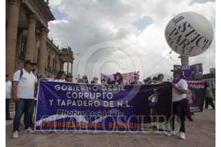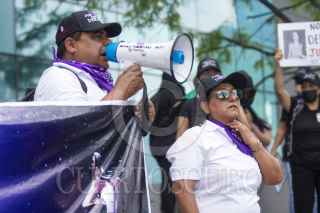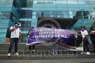 MONTERREY, NUEVO LEÓN, 21ABRIL2023.- A un año de la desaparición y muerte de la joven Debanhi Susana Escobar, encontrada en una cisterna en el interior del Motel Nueva Castilla ubicada en la carretera Monterrey-Nuevo Laredo, familiares, amigos y mujeres feministas realizaron una marcha partiendo del Palacio de Gobierno hacia la Fiscalía General de Justicia de Nuevo León, donde el señor Mario Escobar, papá de Debanhi, dio unas palabras en protesta acerca de cómo las autoridades han trabajado el caso. FOTO: GABRIELA PÉREZ MONTIEL / CUARTOSCURO.COM