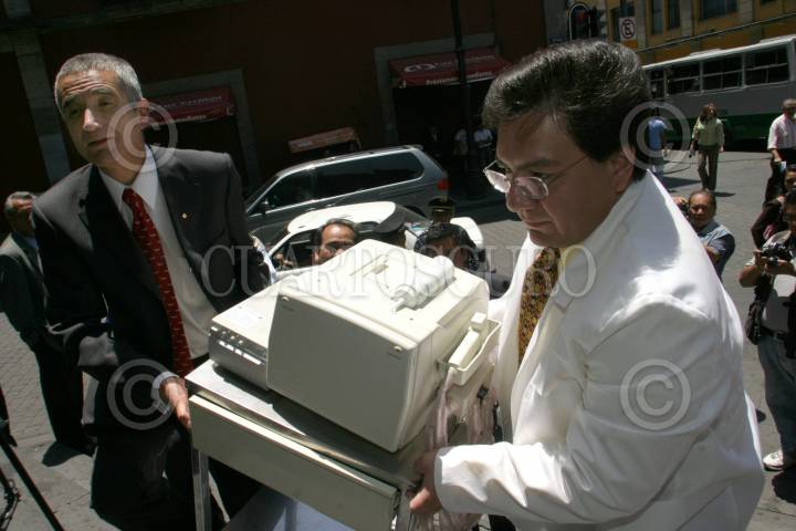 MÉXICO, D.F., 10ABRIL2007.- Jorge Serrano Limón, titular de Pro Vida (espalda), fue recibido con pancartas que tenían tangas, quien pretendía ser recibido por asambleístas a quienes les iba entregar un ultrasonido de una mujer embarazada de sietes semanas para dar argumentos, según él, y se de marcha atrás la aprobación de la ley que despenaliza el aborto. FOTO: MOISÉS PABLO/CUARTOSCURO.COM