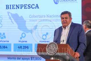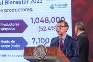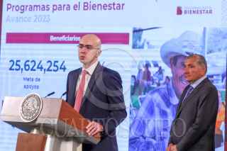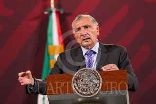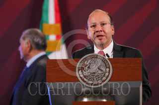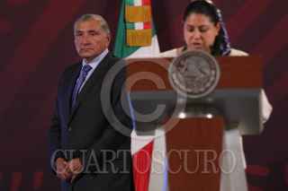CIUDAD DE MÉXICO, 24ABRIL2023.- Andrés Manuel López Obrador, Presidente de México, se ausentó de su mañanera tras dar a positivo a Covid-19 por tercera vez. El encuentro lo encabezó el secretario de Gobernación, Adán Augusto López. Lo acompañaron el gabinete de desarrollo social quienes hablaron de los avances del Tren Maya. FOTO: MOISÉS PABLO/CUARTOSCURO.COM