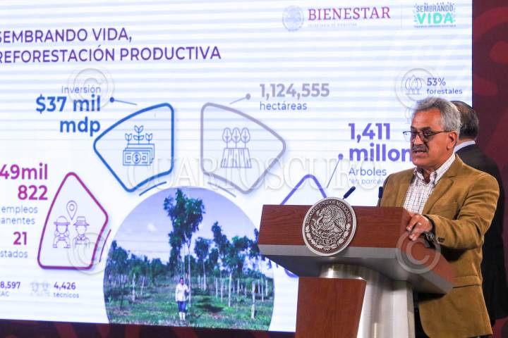 CIUDAD DE MÉXICO, 24ABRIL2023.- Andrés Manuel López Obrador, Presidente de México, se ausentó de su mañanera tras dar a positivo a Covid-19 por tercera vez. El encuentro lo encabezó el secretario de Gobernación, Adán Augusto López. Lo acompañaron el gabinete de desarrollo social quienes hablaron de los avances del Tren Maya. FOTO: MOISÉS PABLO/CUARTOSCURO.COM