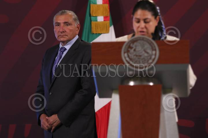CIUDAD DE MÉXICO, 24ABRIL2023.- Andrés Manuel López Obrador, Presidente de México, se ausentó de su mañanera tras dar a positivo a Covid-19 por tercera vez. El encuentro lo encabezó el secretario de Gobernación, Adán Augusto López. Lo acompañaron el gabinete de desarrollo social quienes hablaron de los avances del Tren Maya. FOTO: MOISÉS PABLO/CUARTOSCURO.COM