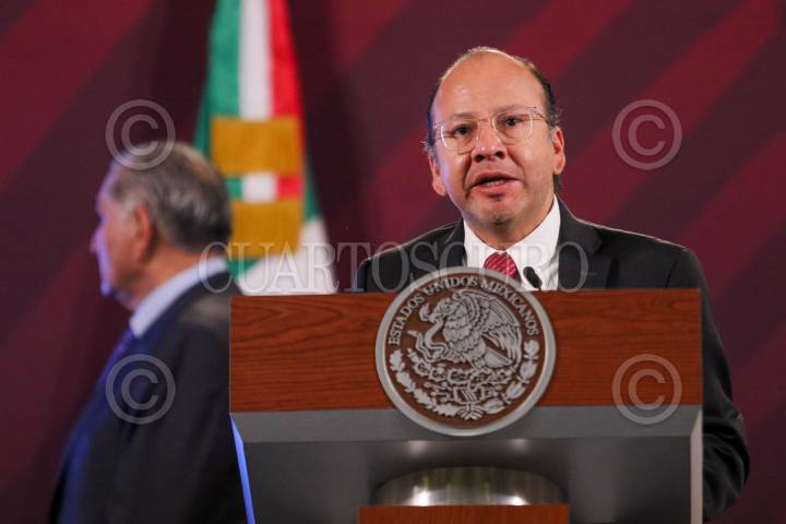 CIUDAD DE MÉXICO, 24ABRIL2023.- Andrés Manuel López Obrador, Presidente de México, se ausentó de su mañanera tras dar a positivo a Covid-19 por tercera vez. El encuentro lo encabezó el secretario de Gobernación, Adán Augusto López. Lo acompañaron el gabinete de desarrollo social quienes hablaron de los avances del Tren Maya. FOTO: MOISÉS PABLO/CUARTOSCURO.COM
