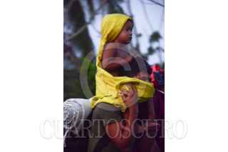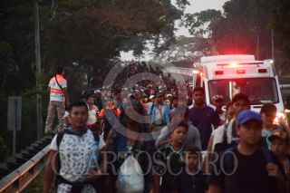 HUEHUETAN, CHIAPAS, 24ABRIL2023.- El Viacrucis Migrante retomó su camino desde muy temprano. El contingente formado por al menos unas 3 mil personas han señalado que su objetivo es llegar a la Ciudad de México para protestar por la muerte de 40 migrantes en una estación migratoria en Ciudad Juárez. La caravana esta siendo acompañada por elementos de Protección Civil quien atiende a quienes se sienten mal en el camino. FOTO: DAMIÁN SÁNCHEZ/CUARTOSCURO.COM