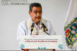 PUEBLA, PUEBLA, 24ABRIL2023.- Alejandra Frausto, secretaria de Cultura, y Sergio Salomón Céspedes Peregrina, gobernador de Puebla, firmaron un convenio de colaboración con el objetivo de fortalecer los proyectos culturales y artísticos en la entidad. La cita fue en el Museo Nacional de los Ferrocarriles Mexicanos, lugar en el que niñas, niños y jóvenes de diversos Semilleros Creativos ofrecieron una muestra artística. En el acto, la secretaria de Cultura federal, Alejandra Frausto Guerrero, comentó que con la firma de convenio: “Venimos a refrendar el compromiso por seguir profundizando los procesos culturales que están vivos en Puebla y que tienen oportunidad de crecer y de consolidarse”. FOTO: SECRETARÍA DE CULTURA/CUARTOSCURO.COM
