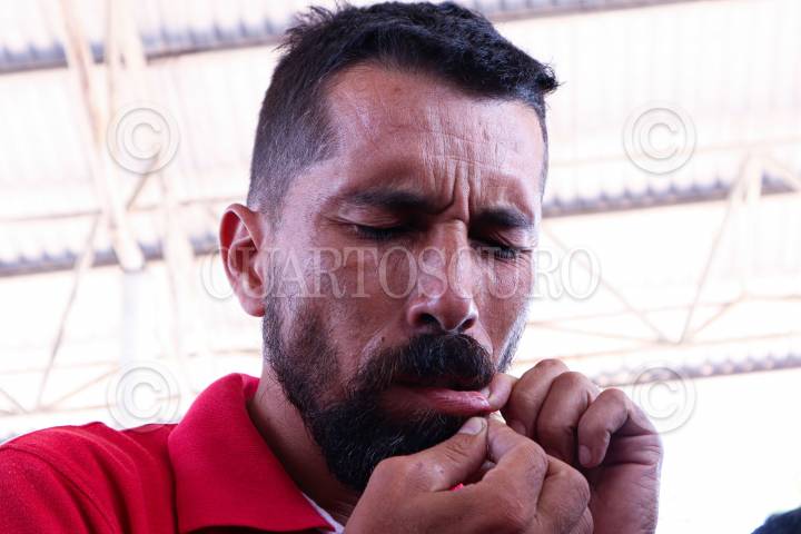 HUIXTLA, CHIAPAS, 25ABRIL2023.- Migrantes de Colombia, Brasil, Cuba, Venezuela, Honduras y el Salvador se cocieron los labios para exigir a las autoridades del Gobierno Federal atención para agilizar los tramites. Roberto Antonio Moreno del salvador dijo llevan tres días caminando exponiendo sus vidas, niños y mujeres, Debora Sofia es de la comunidad trans y también se sumo ha esta protesta. FOTO: DAMIÁN SÁNCHEZ/CUARTOSCURO.COM