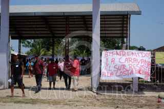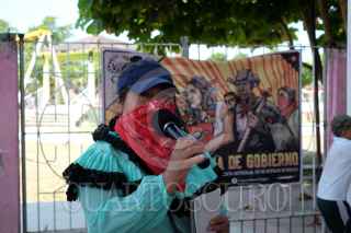 PIJIJIAPAN, CHIAPAS, 25ABRIL2023.- Arrancó la Caravana del Sur Resiste 2023, en la comunidad de El Progreso donde se realizó una marcha denunciando los abusos de la Comisión Federal de Electricidad en esta región y otros proyectos que violan el derecho a la tierra de los pobladores. Al finalizar la marcha se realizó un mítin político con la participación de los alumnos y alumnas de la tele secundaria, integrantes del Consejo Nacional Indígena, y las personas de diferentes partes del mundo que se han sumado para seguir este recorrido por el sur del territorio nacional que se encuentra amenazado por proyectos extractivistas. FOTO: ISABEL MATEOS /CUARTOSCURO.COM