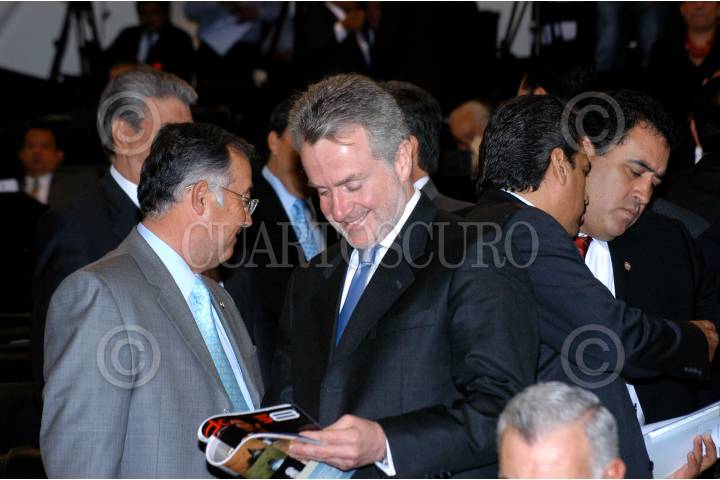 MÉXICO D.F. 10ABRIL2007.-Carlos Navarrete y Jesús García quien tomo protesta como Senador del PRD, en sustitución de Leonel Godoy durante la sesión del Senado de la República. FOTO: GUILLERMO PEREA/CUARTOSCURO.COM