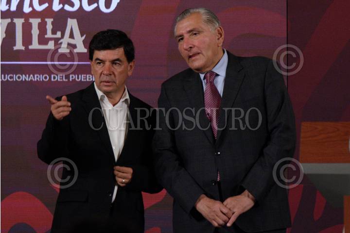 CIUDAD DE MÉXICO, 26ABRIL2023.- Adán Augusto López, secretario de Gobernación, encabezó conferencia de prensa matutina en Palacio Nacional. El secretario estuvo acompañado de: Elizabeth García Vilchis, directora de Redes de la Coordinación General de Comunicación Social y Vocería de Presidencia, y Sergio Salomón Céspedes, gobernador del Estado de Puebla. FOTO: MARIO JASSO/CUARTOSCURO.COM