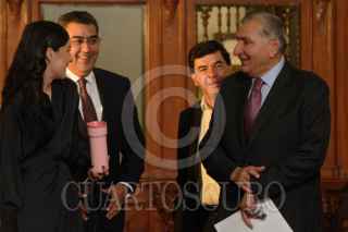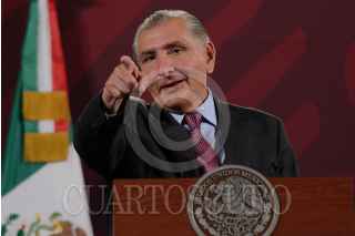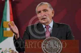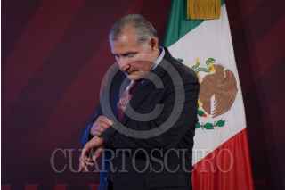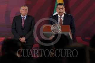 CIUDAD DE MÉXICO, 26ABRIL2023.- Adán Augusto López, secretario de Gobernación, encabezó conferencia de prensa matutina en Palacio Nacional. El secretario estuvo acompañado de: Elizabeth García Vilchis, directora de Redes de la Coordinación General de Comunicación Social y Vocería de Presidencia, y Sergio Salomón Céspedes, gobernador del Estado de Puebla. FOTO: MARIO JASSO/CUARTOSCURO.COM