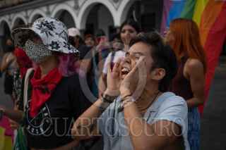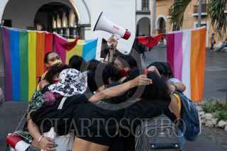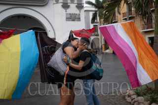 VERACRUZ, VERACRUZ, 26ABRIL2023.- Un grupo de mujeres feministas que se autonombran como Rabia Colectiva, realizaron una protesta pacífica que consistió en besarse entre ellas frente al Palacio del Ayuntamiento en el zócalo de Veracruz, con motivo de conmemorar el Día Internacional de la Visibilización Lésbica. FOTO: VICTORIA RAZO/CUARTOSCURO.COM
