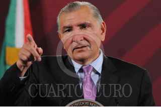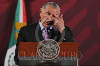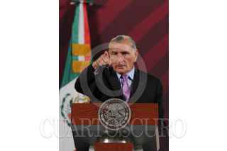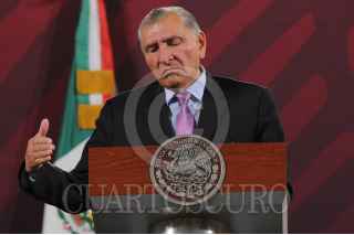 CIUDAD DE MÉXICO, 27ABRIL2023.- Adán Augusto López, secretario de Gobernación, encabeza la conferencia mañanera durante la ausencia del presidente de México, Andrés Manuel López Obrador, luego de que se contagiara de Covid-19. FOTO: DANIEL AUGUSTO /CUARTOSCURO.COM