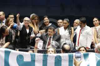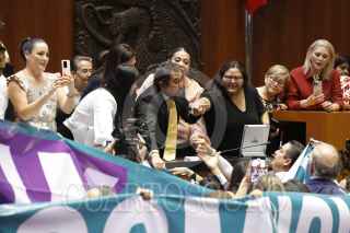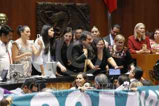 CIUDAD DE MÉXICO, 27ABRIL2023.- Senadores del PAN encabezados por su coordinador Julen Rementería tomaron la tribuna del Senado tras la no elección de un integrante del INAI, los senadores de Morena s enfrascaron en reclamos por esta acción. Los panistas exigen que sean elegidos los tres comisionados que faltan de este organismo para que pueda seguir operando. FOTO: CUARTOSCURO/.COM