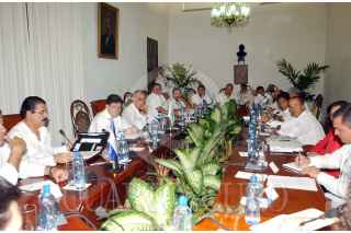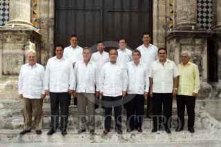 CAMPECHE, CAMPECHE, 10ABRIL2007.- Felipe Calderón Hinojosa, Presidente de los Estados Unidos Mexicanos, durante una reunión con los presidente del Salvador, Antonio Elías Saca, Guatemala, Oscar Berger Perdomo y Honduras, Manuel Zelaya Rosales en el marco de la cumbre de mandatarios del Plan Puebla-Panama. FOTO: ARIEL GUTIERREZ/CUARTOSCURO.COM