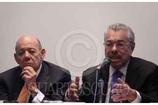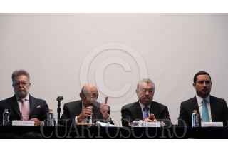 CIUDAD DE MÉXICO, 27ABRIL2023.- José Monroy Zarrivas, Alejandro Romano Rascón y Eduardo Andrade Sánchez, abogados de la ministra Yasmín Esquivel, en compañía del periodista Alfonso Martínez Córdoba, ofrecieron una conferencia en su defensa en el Hotel Fiesta Americana FOTO: GRACIELA LÓPEZ/CUARTOSCURO.COM