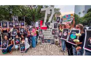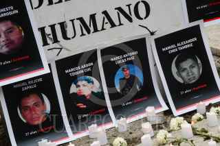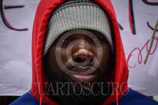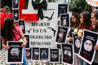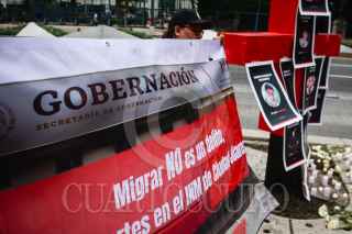 CIUDAD DE MÉXICO, 27ABRIL2023.- Activistas defensores de Derechos Humanos colocaron fotografías en el antimonumento 72 ubicado en Avenida Paseo de la Reforma, como homenaje a los migrantes fallecidos hace un mes en una estancia provisional del Instituto Nacional de Migración (INM) en Ciudad Juarez. FOTO: MARIO JASSO/CUARTOSCURO.COM