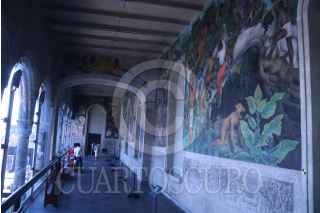 CUERNAVACA, MORELOS, 27ABRIL2023.- Después de cinco años de permanecer cerrado debido a los daños que sufrió durante el sismo del 19 de septiembre de 2017, fue abierto el Museo Regional de los Pueblos de Morelos, anteriormente conocido como Palacio de Cortés. La construcción de este palacio civil fue ordenada por el conquistador Hernán Cortes en 1526, inmediatamente después de la Conquista. En 1974 este edificio fue convertido en museo, actualmente se puede recorrer cinco salas, en dos de ellas hay arqueología donde se pueden observar fósiles marinos y huesos de mamut, en otra cerámica nahua morelense; las restantes abordan el tema bicultural y en una montaran exposiciones temporales en una sala decorado con murales del pintor Salvador Tarazona. El gran tríptico mural en la arcada trasera pintada por Diego Rivera donde se narra la historia del Morelos cual fue sometido a un proceso de restauración. FOTO: MARGARITO PÉREZ RETANA / CUARTOSCURO.COM