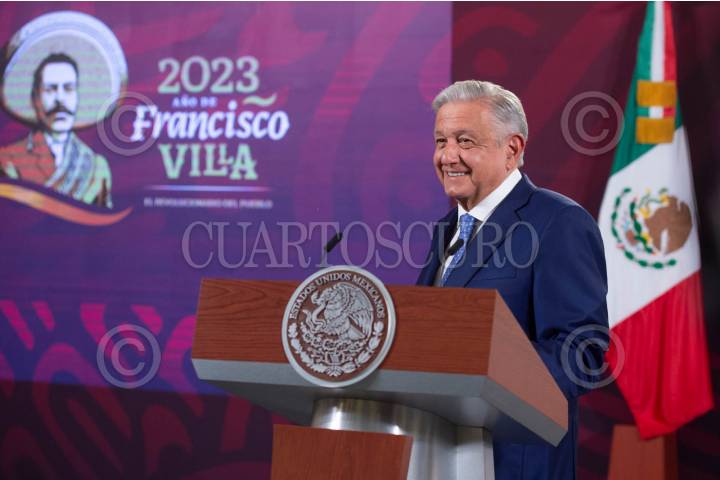 CIUDAD DE MÉXICO, 28ABRIL2023.- Andrés Manuel López Obrador, Presidente de México, reapareció en su tradicional mañanera tras estar ausente una semana por un cuadro de Covid-19, lo acompaño Jorge Mendoza Sánchez, director general del Banco Nacional de Obras y Servicios Públicos (Banobras). FOTO: PRESIDENCIA/CUARTOSCURO.COM