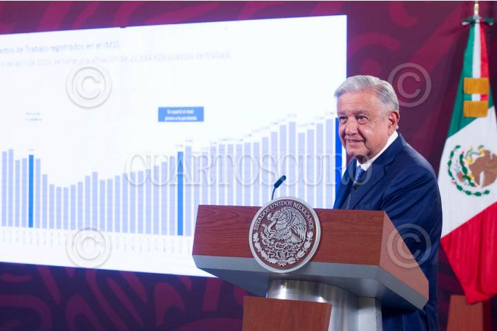 CIUDAD DE MÉXICO, 28ABRIL2023.- Andrés Manuel López Obrador, Presidente de México, reapareció en su tradicional mañanera tras estar ausente una semana por un cuadro de Covid-19, lo acompaño Jorge Mendoza Sánchez, director general del Banco Nacional de Obras y Servicios Públicos (Banobras). FOTO: PRESIDENCIA/CUARTOSCURO.COM